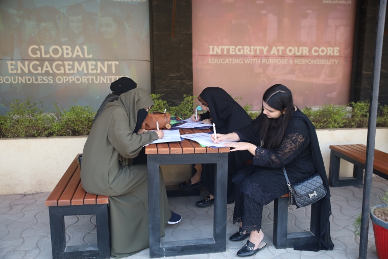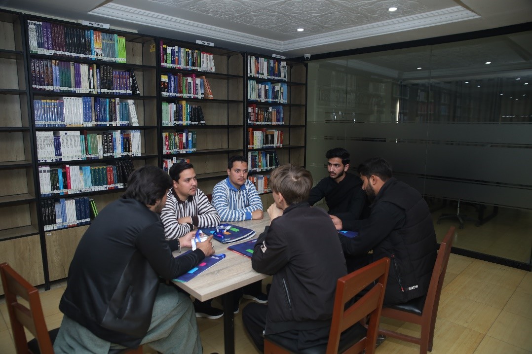 Students interacting with each other to build a supportive academic community at University of Rawalpindi.